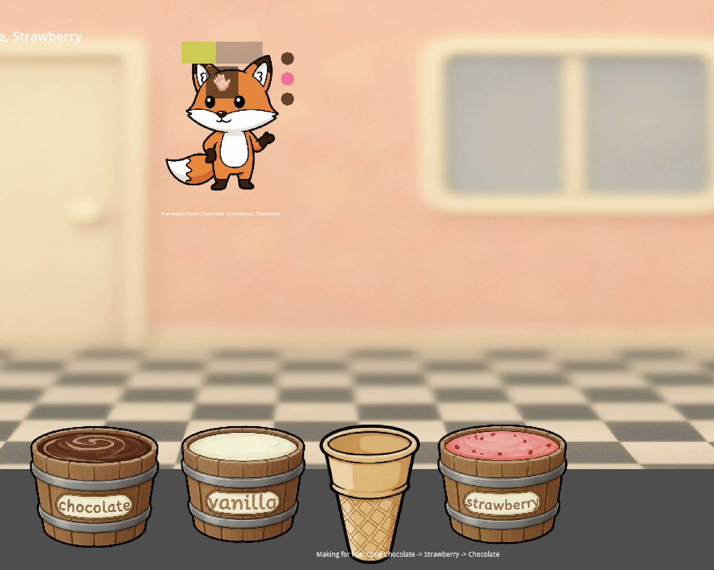 Start a new game and place the correct flavor on top of the ice cream cone to match the customer's order.